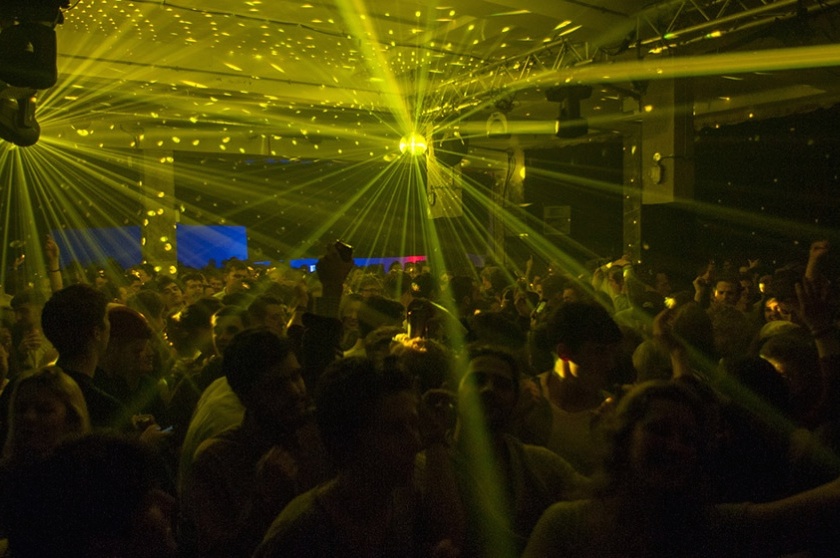 We ventured into the main warehouse where, behind some black fabric sectioning off the bar area, we found Motor City Drum Ensemble playing amidst a foray of lasers beaming from disco balls which hovered above the crowd. This was the perfect setting for the disco and almost garage-style house being played in the borderline tropical climate of the hot room. Another serving of nineties house with ‘Do You Love Me’ by Lil Louis; which had many happy screw-faces mouthing ‘take me higher and higher!’ as the track visibly elevated them on the dancefloor.