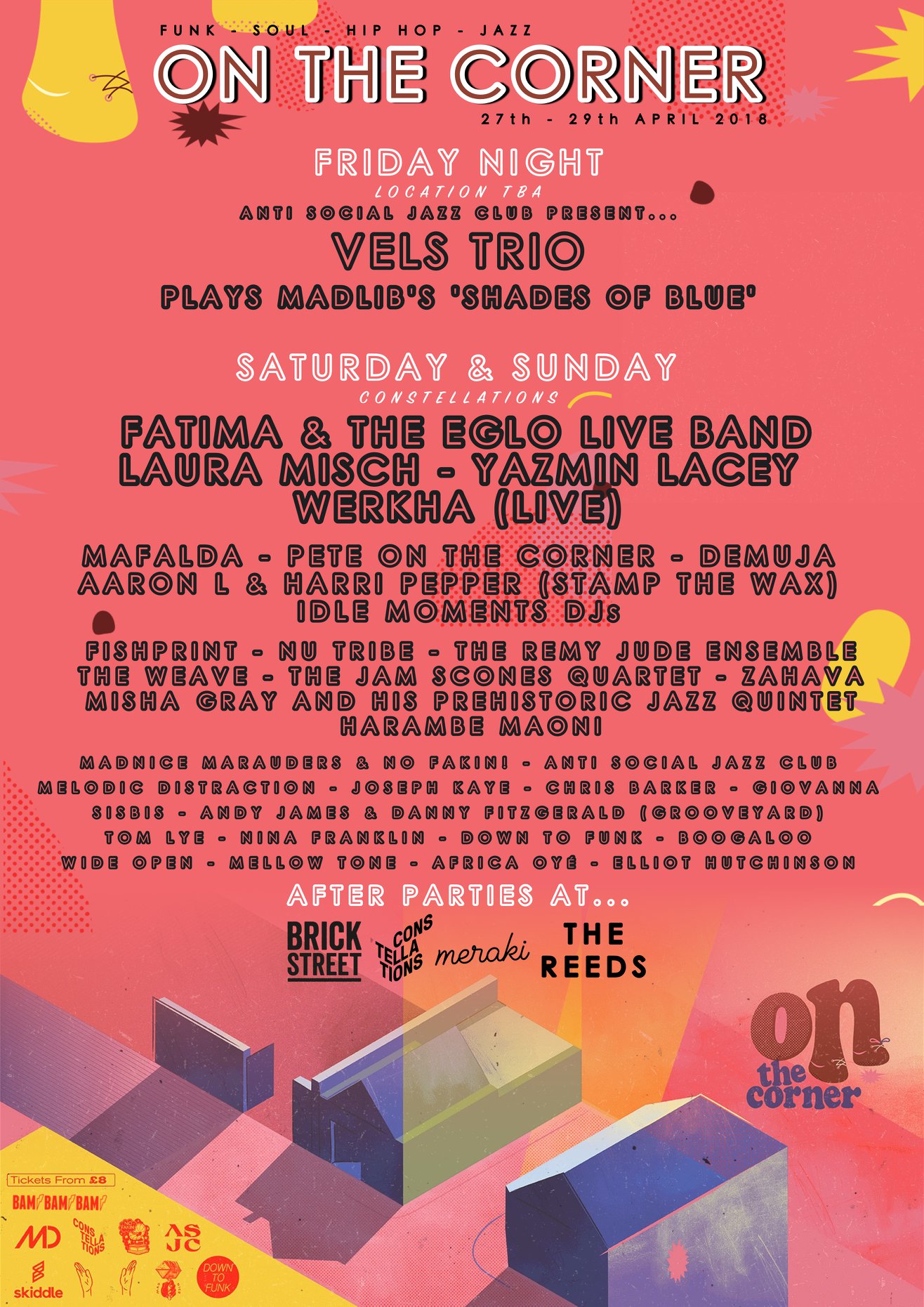 Launching on Friday night, Vels Trio play Madlib’s Shades of Blue. The main festival follows the next day at Constellations with Fatima & The Eglo Live Band joined by Werkha, Laura Misch, Yazmin Lacey, Mafalda, Pete On The Corner, Aaron L and Harri Pepper. Afterparties are located around the city at new, grassroots events spaces The Reeds, Brick Street and Meraki, hosting local DJs til the small hours. Sunday will be dominated by workshops, popups and a record fair, while Melodic Distraction Radio will be broadcasting from the festival all weekend.