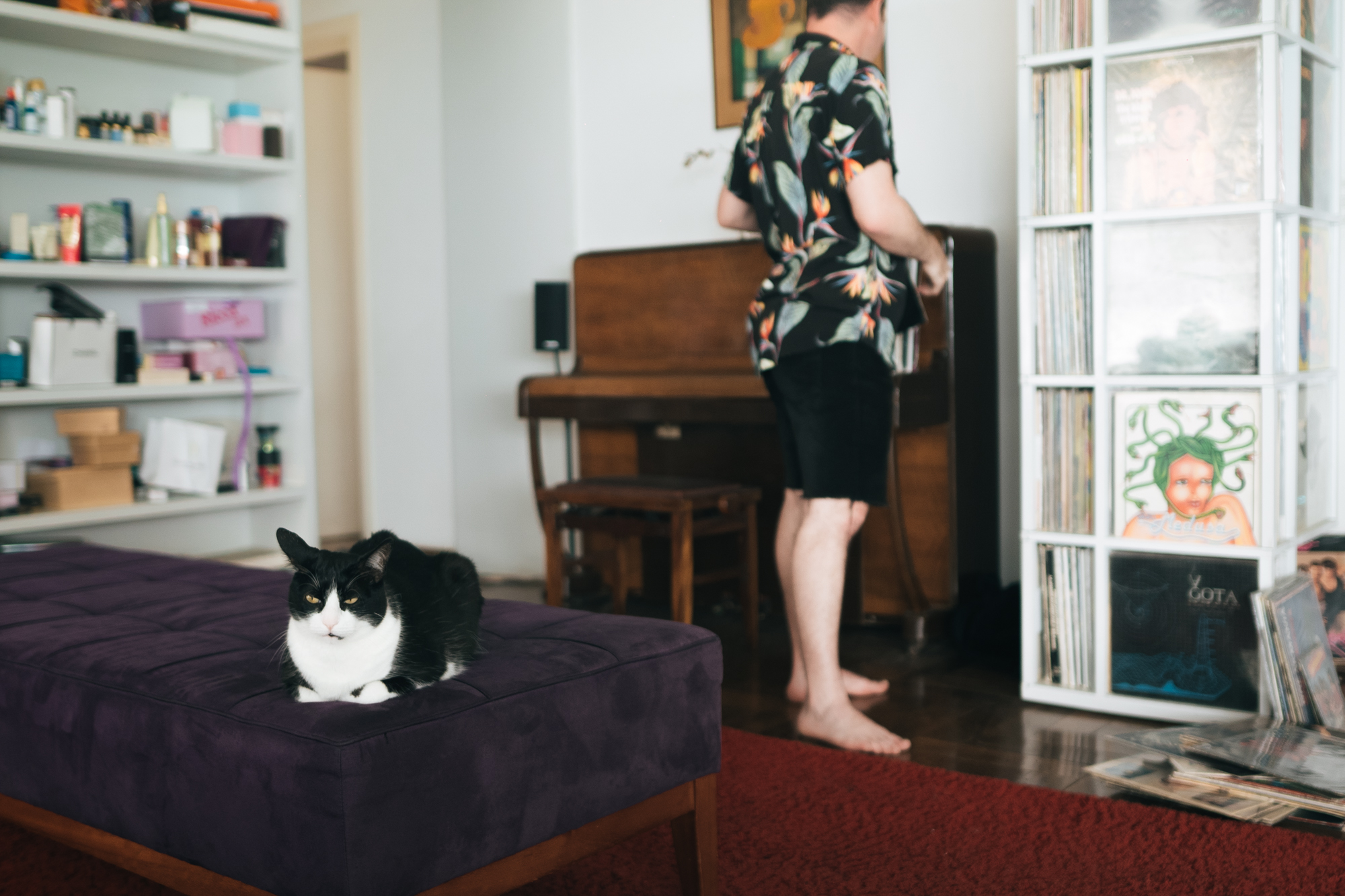 Part of my records are in this totem in the living room specially designed by an architect when me and my wife married – she didn’t like the classic vision of records stored sideways, which I have to agree with, that says nothing apart from that you have too many. The greatest view of a record is to see the cover (when there’s one) so this furniture allows me to display 20 covers at once while storing around 1,000 records. But that’s the “Instagram” alternate dimension – the reality is that I have records in my closet, in the basement, thrown around on what’s supposed to be a studio, but apart from that there’s a logic in the way I keep them – disco 12”, disco LPs, classic rock, rock 12”, classic house and techno, new electronic stuff, leftfield/balearic, jazz and blues, soul and funk, reggae and the many many different Brazilian genres… I’m fortunate to have a pretty good memory so I never felt the need to develop a system – so one will never find my records with fancy, colourful stickers or post-its with BPM and other notes. I find it kinda cute though.